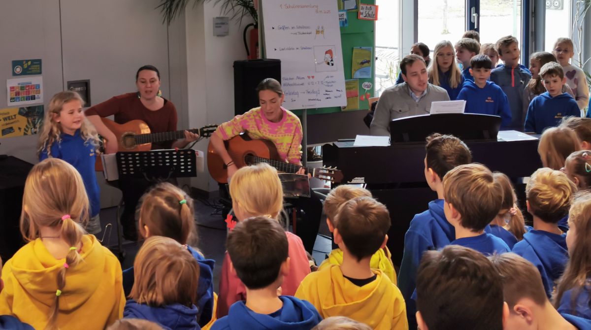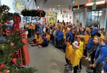 Die Spannung stieg, als sich die Kinder aller Klassen in der Aula versammelt hatten und auf den Nikolaus warteten. Empfangen von Schulleiterin Frau Beate Schlichenmaier trat er schließlich würdevoll ein. Nach einer gelungenen musikalischen Begrüßung wandte er sich an die Kinder und ließ mit Hilfe seines goldenen Buches die Ereignisse des vergangenen Jahres Revue passieren. Die Schulfamilie zeigte sich in dieser Stunde von ihrer besten Seite und erfreute den Nikolaus mit Gedichten und musikalischen Beiträgen. Zur Unterstützung war eigens der neue Regionalkantor Herr Pius Schuhbaum gekommen und begleitete geschickt am Klavier.