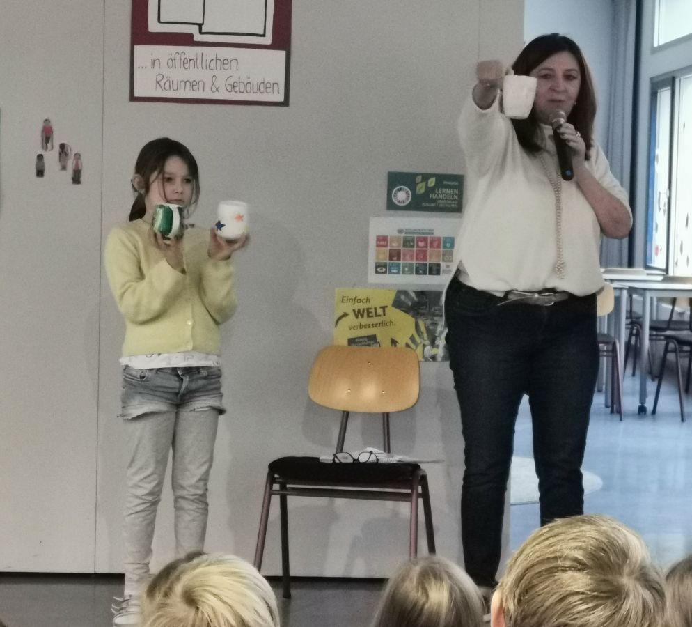 Weiterhin wurde die Aktion "Geschenk mit Herz" erläutert und auf den baldigen Abgabetermin aufmerksam gemacht. Ebenso waren der Auftritt am Weihnachtsmarkt am 6. Dezember und der Verkauf der Tassen durch den Elternbeirat, die die Kinder selbst bemalen durften, ein Thema. Zuletzt wurde ausführlich über den Ablauf und die Inhalte des bundesweiten Vorlesetags am kommenden Freitag gesprochen und das Lied "Lesenheißt auf Wolken schweben" geübt, das eingangs gesungen werden sollte.